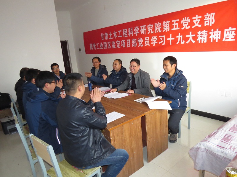 2017年12月15日,我公司黨委第五黨支部藏青工業(yè)園區(qū)房屋鑒定項(xiàng)目部黨員學(xué)習(xí)十九大精神組織生活會(huì),在格爾木市工地項(xiàng)目部辦公室召開(kāi)。我院黨委委員、副院長(zhǎng)安貴倉(cāng)同志及項(xiàng)目部黨員和其他同志參加了會(huì)議。會(huì)上,該項(xiàng)目部三名黨員結(jié)合十九大精神對(duì)自己的工作及學(xué)習(xí)情況進(jìn)行了交流發(fā)言,結(jié)構(gòu)抗震所所長(zhǎng)劉恒鎮(zhèn)同志對(duì)該項(xiàng)目部近期工作進(jìn)行了安排部署,安貴倉(cāng)同志進(jìn)行了總結(jié)發(fā)言,他強(qiáng)調(diào),我們一定要認(rèn)真領(lǐng)會(huì)貫徹學(xué)習(xí)十九大精神,發(fā)揮黨員的模范帶頭作用,當(dāng)前項(xiàng)目部的各位黨員同志一定要講奉獻(xiàn),勇于擔(dān)當(dāng),用牢不可破的思想信念為自己鼓勁,克服高寒環(huán)境帶來(lái)的不利因素,更好更快地完成該房屋鑒定項(xiàng)目。