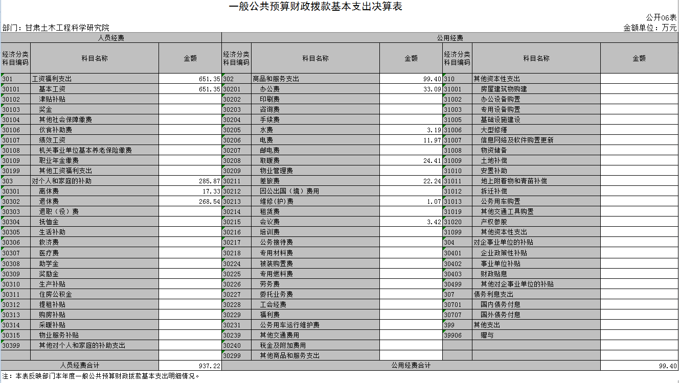 表六:一般公共預(yù)算財政撥款基本支出決算表