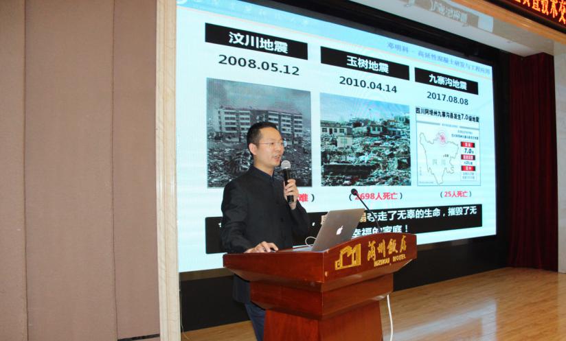 由西安建筑科技大學(xué)高延性混凝土研究所所長(zhǎng)鄧明科教授進(jìn)行高延性混凝土研發(fā)及應(yīng)用技術(shù)講解