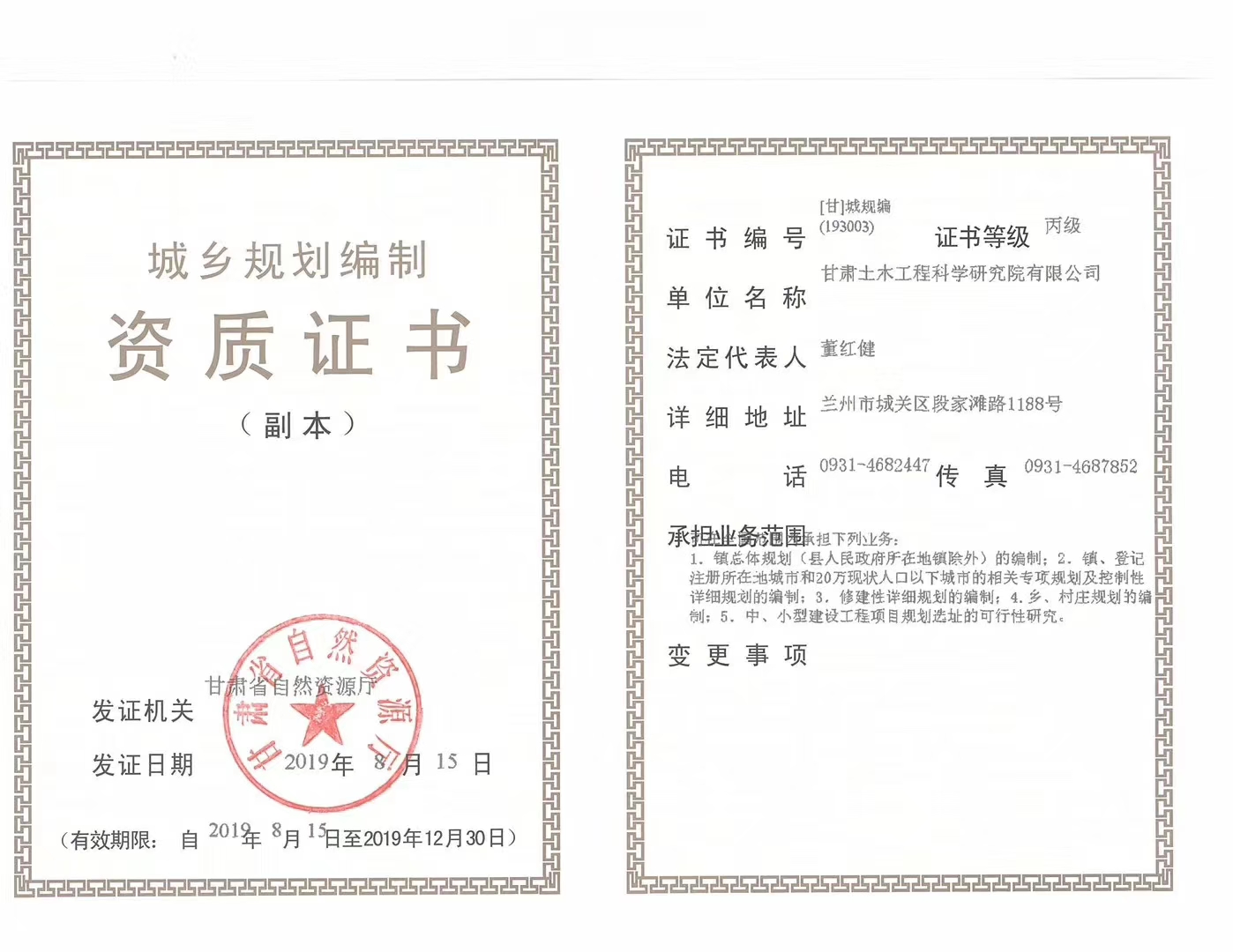 近日,公司建筑工程施工總承包貳級資質(zhì)和城鄉(xiāng)規(guī)劃丙級資質(zhì)獲甘肅省住房和城鄉(xiāng)建設(shè)廳和甘肅省自然資源廳批準(zhǔn),標(biāo)志著公司資質(zhì)建設(shè)取得重大進(jìn)展。