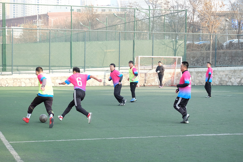 本次比賽由職能、設(shè)計(jì)聯(lián)隊(duì)對(duì)陣巖土、檢測(cè)聯(lián)隊(duì)。雖然天氣嚴(yán)寒,但大家在球場(chǎng)上的熱情絲毫不減。隊(duì)員們激烈拼搶?zhuān)铰娜顼w,運(yùn)球熟練,傳球精彩,搶斷漂亮,射門(mén)精準(zhǔn)。比賽波瀾跌宕,賽場(chǎng)精彩紛呈。最終巖土、檢測(cè)聯(lián)隊(duì)技高一籌以8:7獲得勝利。