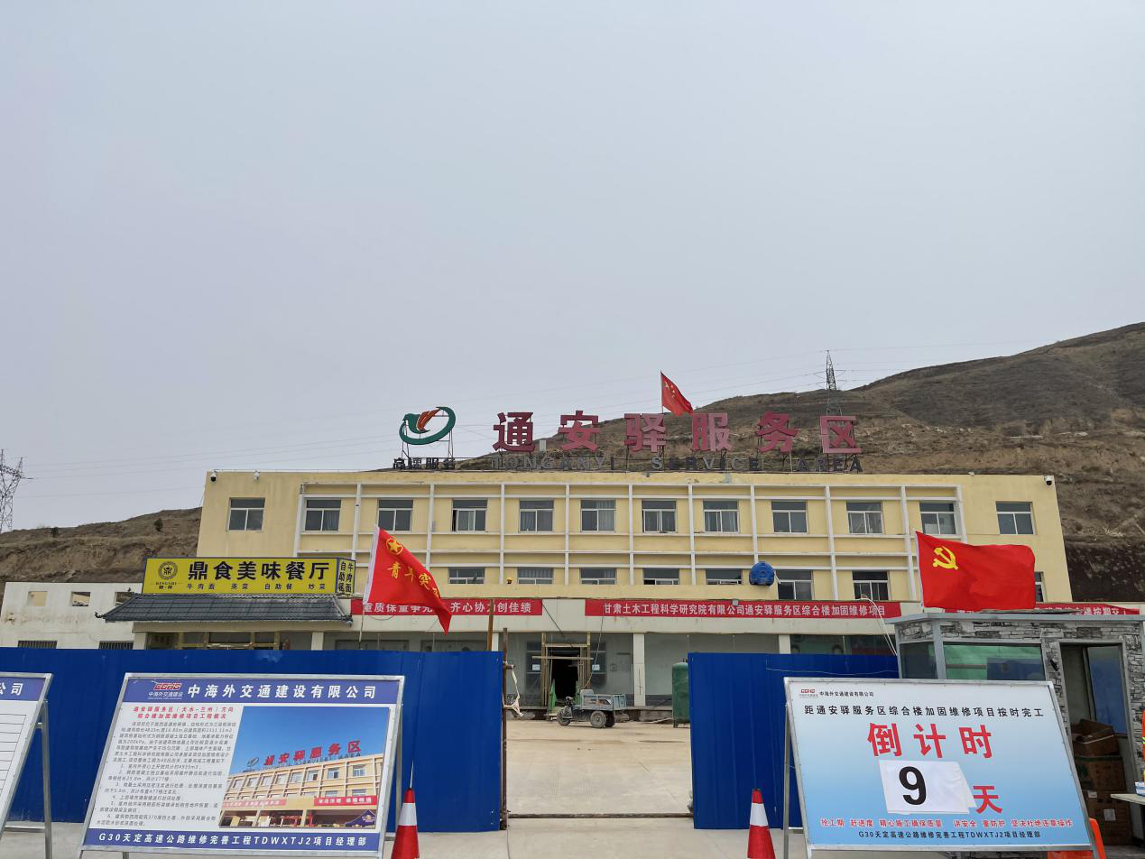 通安驛服務(wù)區(qū)(天水-蘭州)方向綜合樓加固維修項(xiàng)目是省交通廳重要民生項(xiàng)目,自開工以來受到社會(huì)廣泛關(guān)注。項(xiàng)目建筑物結(jié)構(gòu)為三層框架結(jié)構(gòu),總建筑面積2311.11㎡,基礎(chǔ)采用鋼筋混凝土階式獨(dú)立基礎(chǔ),按照要求務(wù)必在四十天內(nèi)按期交付,時(shí)間緊、任務(wù)重、壓力大。項(xiàng)目負(fù)責(zé)人堅(jiān)持黨建引領(lǐng)促生產(chǎn)、創(chuàng)先爭優(yōu)做表率,親自部署、靠前指揮,成立“青年突擊隊(duì)”,帶領(lǐng)施工人員克服困難、爭分奪秒,研判技術(shù)難題,綜合采用植筋、水鉆成孔、素混凝土引孔及注漿孔成孔、靜壓樁施工、鋼管柱及地基注漿、剛性板施工等施工工藝,積極搶抓工期、晝夜奮戰(zhàn)、全力沖刺,重壓保量爭先鋒,齊心協(xié)力創(chuàng)佳績。