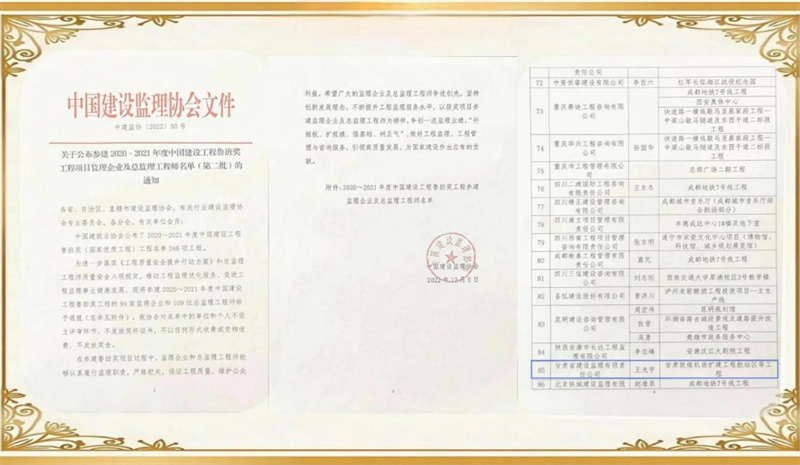 項(xiàng)目榮獲中國建設(shè)工程魯班獎,項(xiàng)目總監(jiān)理工程師榮獲“先進(jìn)個(gè)人”榮譽(yù)稱號