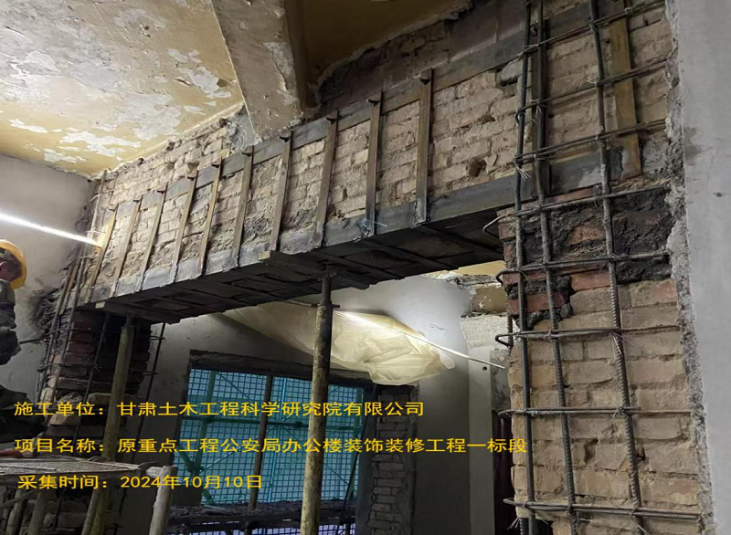 因運(yùn)行安全需要,2024年9月,公司承攬了原重點(diǎn)工程公安局辦公樓裝飾裝修工程一標(biāo)段(結(jié)構(gòu)加固設(shè)計(jì)與施工),作業(yè)內(nèi)容是對(duì)建筑物現(xiàn)澆鋼筋混凝土梁、板、柱、墻體等進(jìn)行結(jié)構(gòu)加固,2025年7月4日整體竣工。本項(xiàng)目位于甘肅省蘭州市城關(guān)區(qū)民主西路11號(hào),始建于1960年,建筑物于1980年進(jìn)行過(guò)抗震加固。該建筑為地上五層磚砌體結(jié)構(gòu),建筑物承重墻采用燒結(jié)普通磚砌筑,建筑物軸線總長(zhǎng)為67.8m,總寬為12.2m,一層至四層層高均為3.2m,五層層高為4.2m,建筑高度為17.6m,總建筑面積約3454.47㎡。