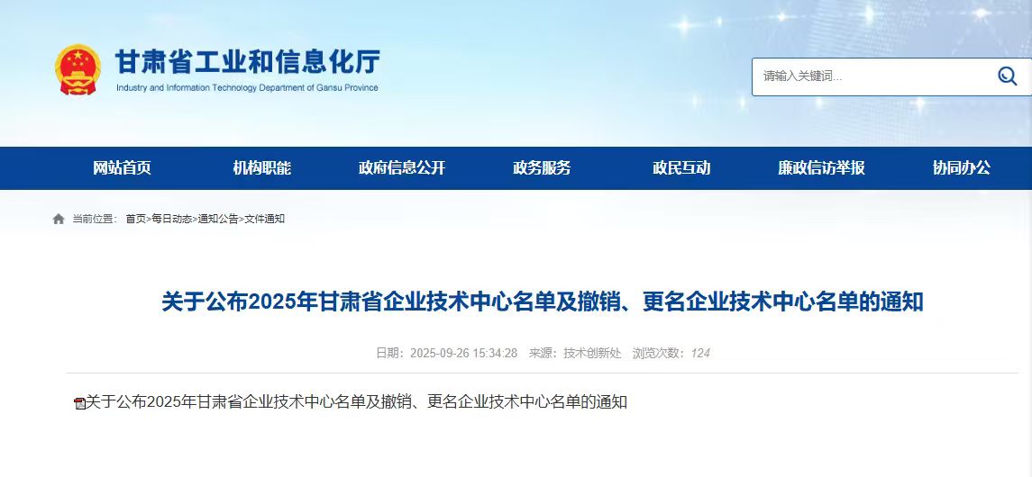 近日,甘肅省工業(yè)和信息化廳發(fā)布《關(guān)于公布2025年甘肅省企業(yè)技術(shù)中心名單及撤銷、更名企業(yè)技術(shù)中心名單的通知》。我公司被甘肅省工業(yè)和信息化廳、甘肅省發(fā)展和改革委員會、甘肅省科學技術(shù)廳、甘肅省財政廳、國家稅務總局甘肅省稅務局聯(lián)合認定為2025年甘肅省企業(yè)技術(shù)中心。這一認定標志著我公司在技術(shù)創(chuàng)新體系建設、核心技術(shù)研發(fā)及成果轉(zhuǎn)化能力等方面獲得省級權(quán)威認可,躋身全省同行業(yè)技術(shù)創(chuàng)新先進行列。