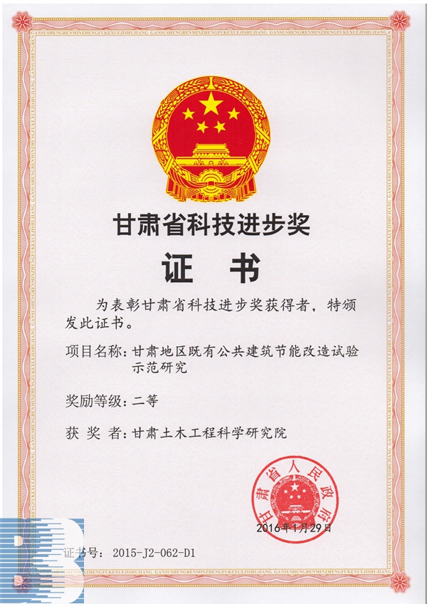 《甘肅地區(qū)既有公共建筑節(jié)能改造試驗(yàn)示范研究》(2015年度甘肅省科技進(jìn)步二等獎(jiǎng))