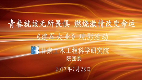 為紀念中國人民解放軍建軍90周年,銘記我軍的光輝歷史,豐富職工文化生活,我院團委于7月28日組織全院職工觀看電影《建軍大業(yè)》。我院章海峰院長、鄭建軍副院長與182位職工參加了本次觀影活動。